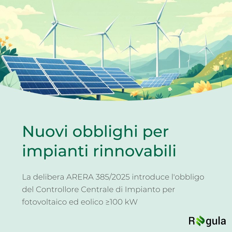 La delibera ARERA 385/2025/R/EEL recepisce l’aggiornamento dell’Allegato A.72 al Codice di Rete di Terna e introduce l’obbligo di installazione del Controllore Centrale di Impianto (CCI) per impianti fotovoltaici ed eolici ≥100 kW connessi in media tensione. L’obiettivo è garantire l’osservabilità e la regolazione in tempo reale della generazione distribuita. Previsti contributi forfetari fino a 10.000 € per chi si adegua in anticipo (entro febbraio/marzo 2026). Inadempienze comportano sospensione incentivi GSE e rischio disconnessione.