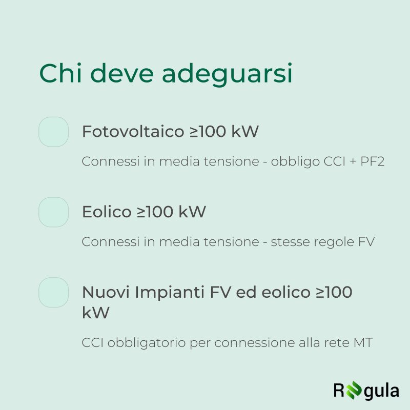 Nuovi impianti (FV/eolico ≥100 kW) | Obbligati | CCI installato ai fini della connessione |