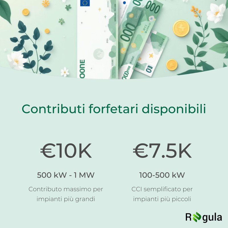100 kW ≤ P < 500 kW: contributo base 7.500 € (CCI semplificato).