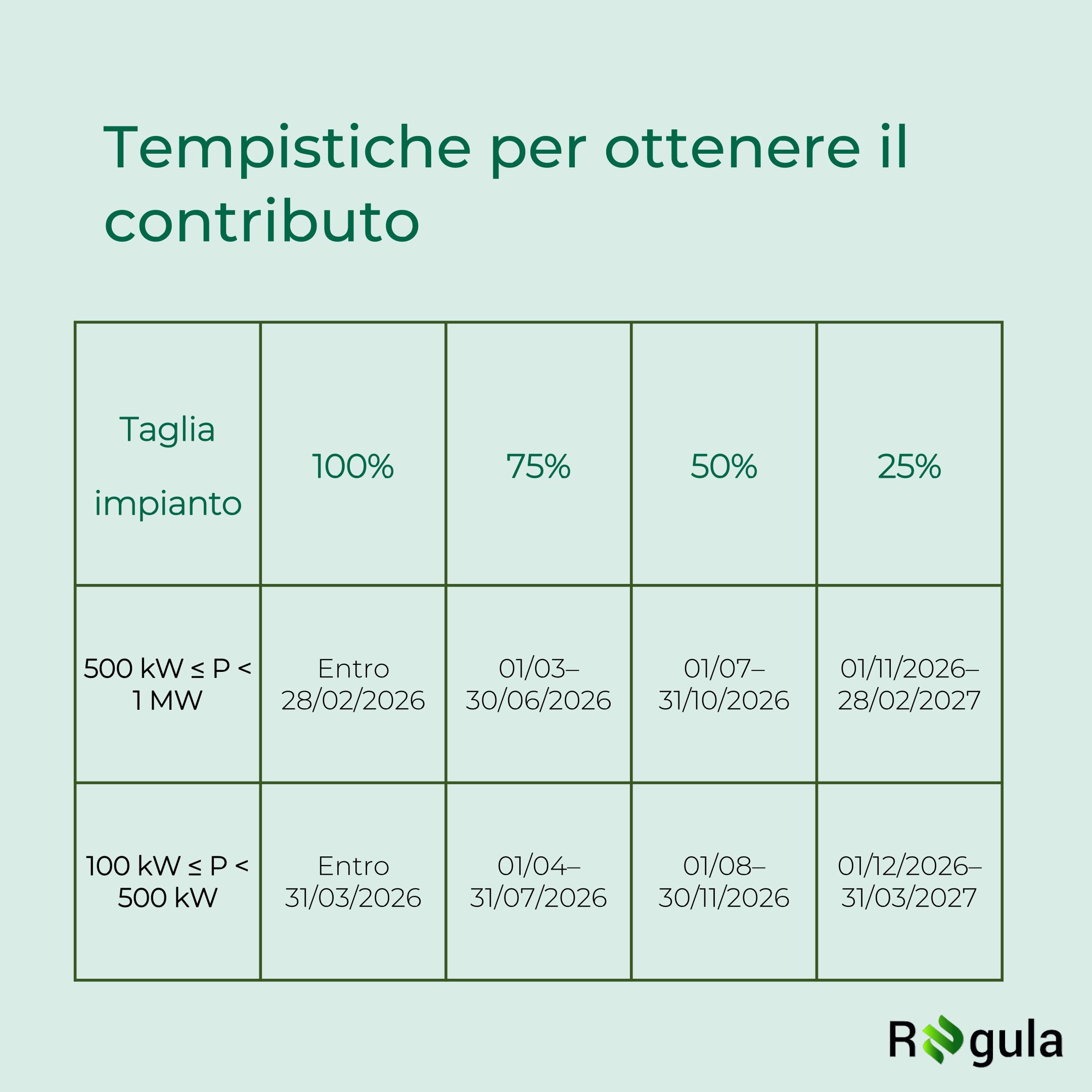 100 kW ≤ P < 500 kW | Entro 31/03/2026 | 01/04–31/07/2026 | 01/08–30/11/2026 | 01/12/2026–31/03/2027 |
