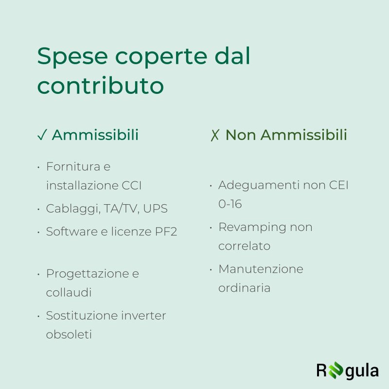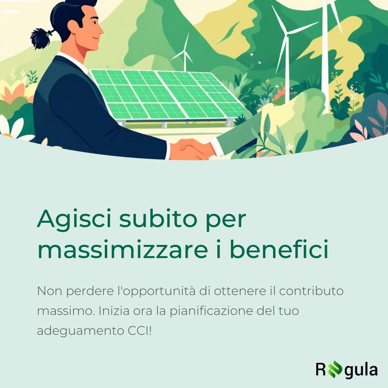 Cumulabilità: alternativa ad altri contributi specifici sull’adeguamento CCI; cumulabile con altri incentivi sulla produzione (es. FER, CER), salvo divieto di doppio finanziamento.